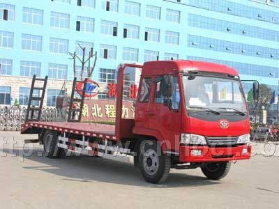 我公司是國(guó)家發(fā)改委批準(zhǔn)從事專用汽車的定點(diǎn)生產(chǎn)制造企業(yè),也是東風(fēng)汽車集團(tuán)專用汽車的改裝基地之一,集專用改裝汽車的產(chǎn)品研發(fā)、生產(chǎn)制造、產(chǎn)品銷售及售后服務(wù)于一體,公司以過硬的產(chǎn)品質(zhì)量和完善及時(shí)的售后服務(wù)鑄就了專用汽車的又一品牌—"程力威".公司產(chǎn)品已全面通過ISO9000-2000質(zhì)量管理體系認(rèn)證和CCC強(qiáng)制性認(rèn)證,企業(yè)被評(píng)為湖北省消費(fèi)者滿意單位,"程力威"專用汽車產(chǎn)品也被評(píng)為消費(fèi)者滿意產(chǎn)品,同時(shí)取得了湖北"守合同、重信用企業(yè)"稱號(hào). 挖機(jī)平板運(yùn)輸車適用于公路路面機(jī)械、攤鋪機(jī)、鐵銑機(jī)、壓路機(jī)以及工程履帶設(shè)備等各種公路、市政、建筑大型施工機(jī)械設(shè)備的轉(zhuǎn)場(chǎng)運(yùn)輸.它具有靈活方便、自主上下(各履帶式工程設(shè)備可自行上下平臺(tái),無需其他任何起吊設(shè)備及輔助工具)、升降自如(跳板采用內(nèi)隙自調(diào)液壓增力式裝置,可自行升降)的特點(diǎn).挖機(jī)平板運(yùn)輸車首次采用串聯(lián)式平衡懸掛,運(yùn)輸?shù)缆窡o論平整、凹凸,懸掛系統(tǒng)都能均衡受力,從而保證了車輛在運(yùn)輸過程中安全無損壞.安裝防滑條,保證被運(yùn)輸車輛的安全性 。